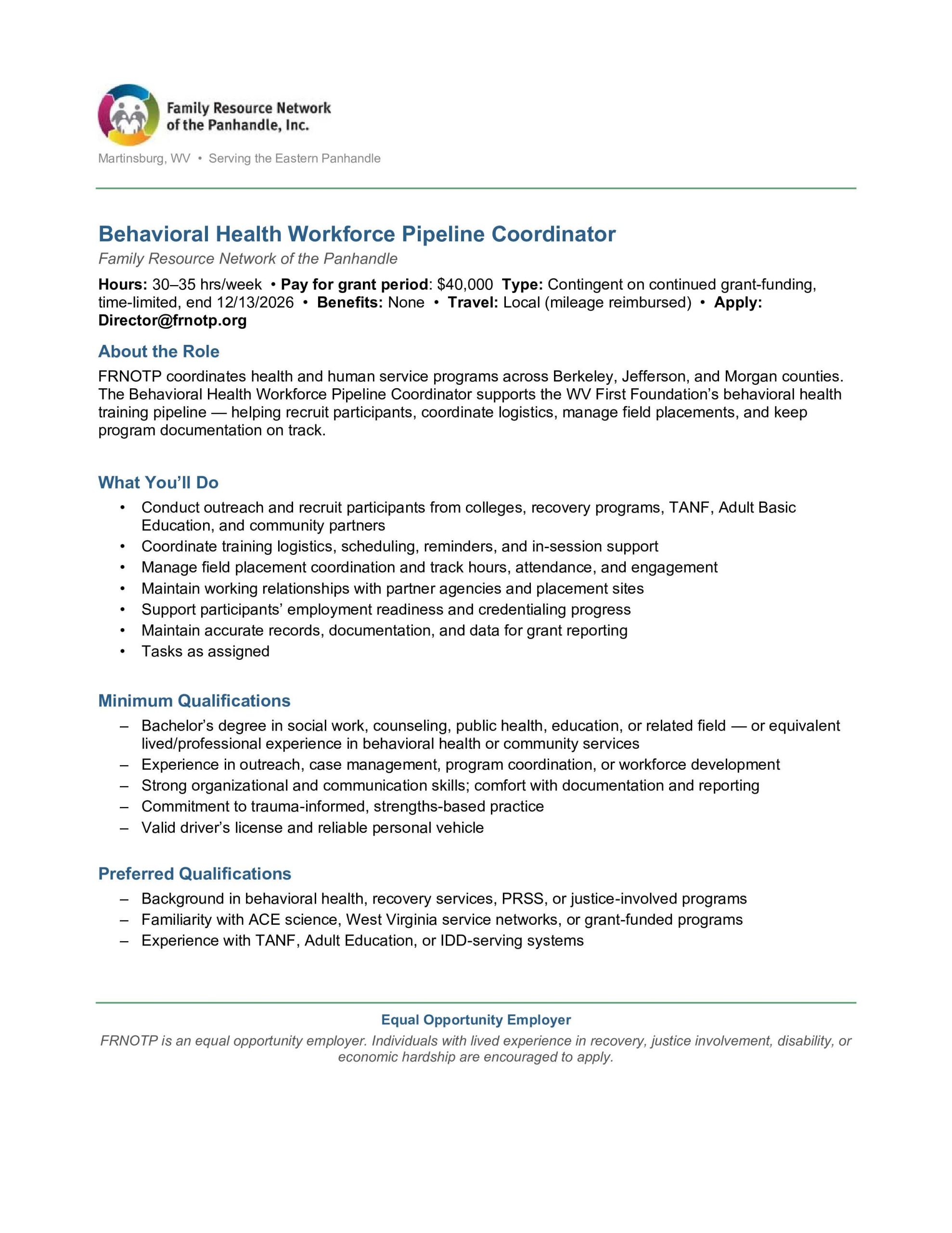 Behavioral Health Workforce Pipeline Coordinator